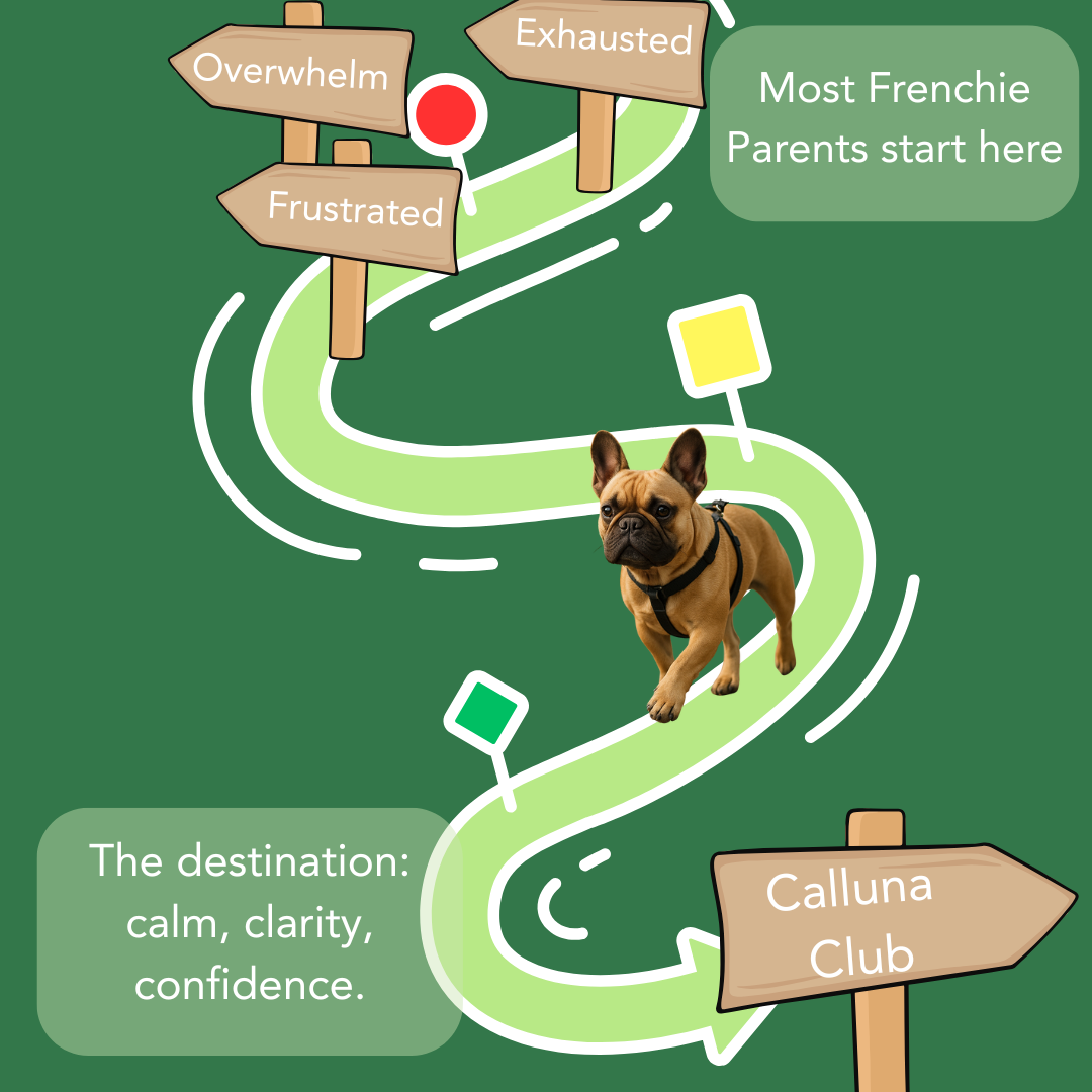 Every Frenchie parent starts in a different place - often feeling overwhelmed, frustrated, or exhausted. The Calluna Club gives you a clear, step-by-step path that takes you from chaos to calm, so you and your dog can finally enjoy life together.