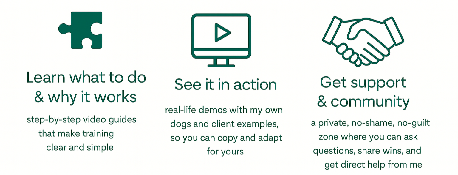It’s not about being perfect - it’s about having the right tools, structure, and support so you and your dog can finally enjoy a more calm, happier life together.